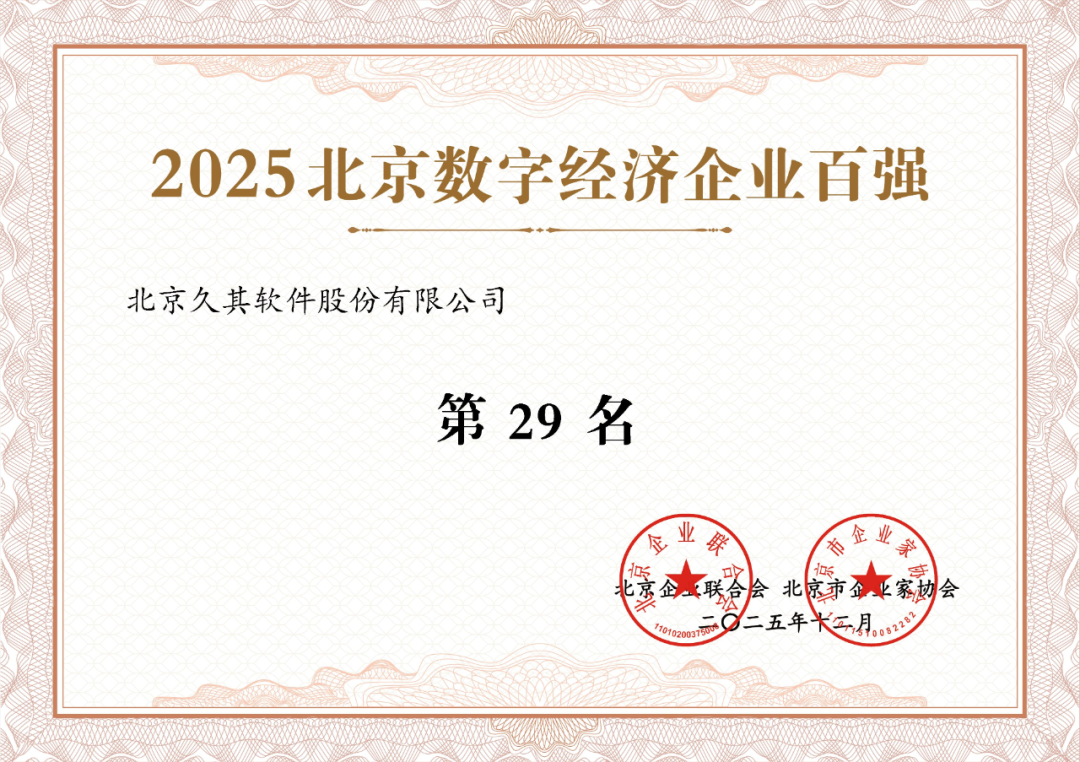 近日,北京企业联合会、北京市企业家协会正式发布2025年度北京企业百强系列榜单。久其软件凭借在高精尖技术创新、数字经济融合实践及优质服务业态构建等领域的卓越表现,强势斩获三项重磅荣誉——荣登北京高精尖企业百强29名、北京数字经济企业百强第29名、北京服务业企业百强第53名,以硬核实力彰显了在首都高质量发展浪潮中的标杆地位。