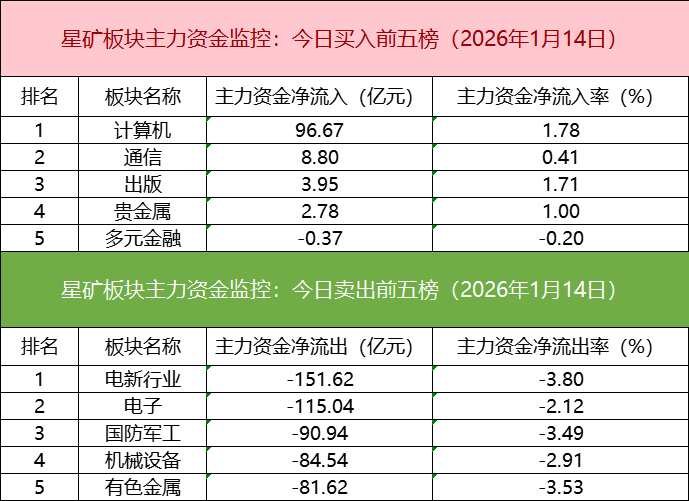 板块资金流出方面,电新行业主力资金净流出居首。