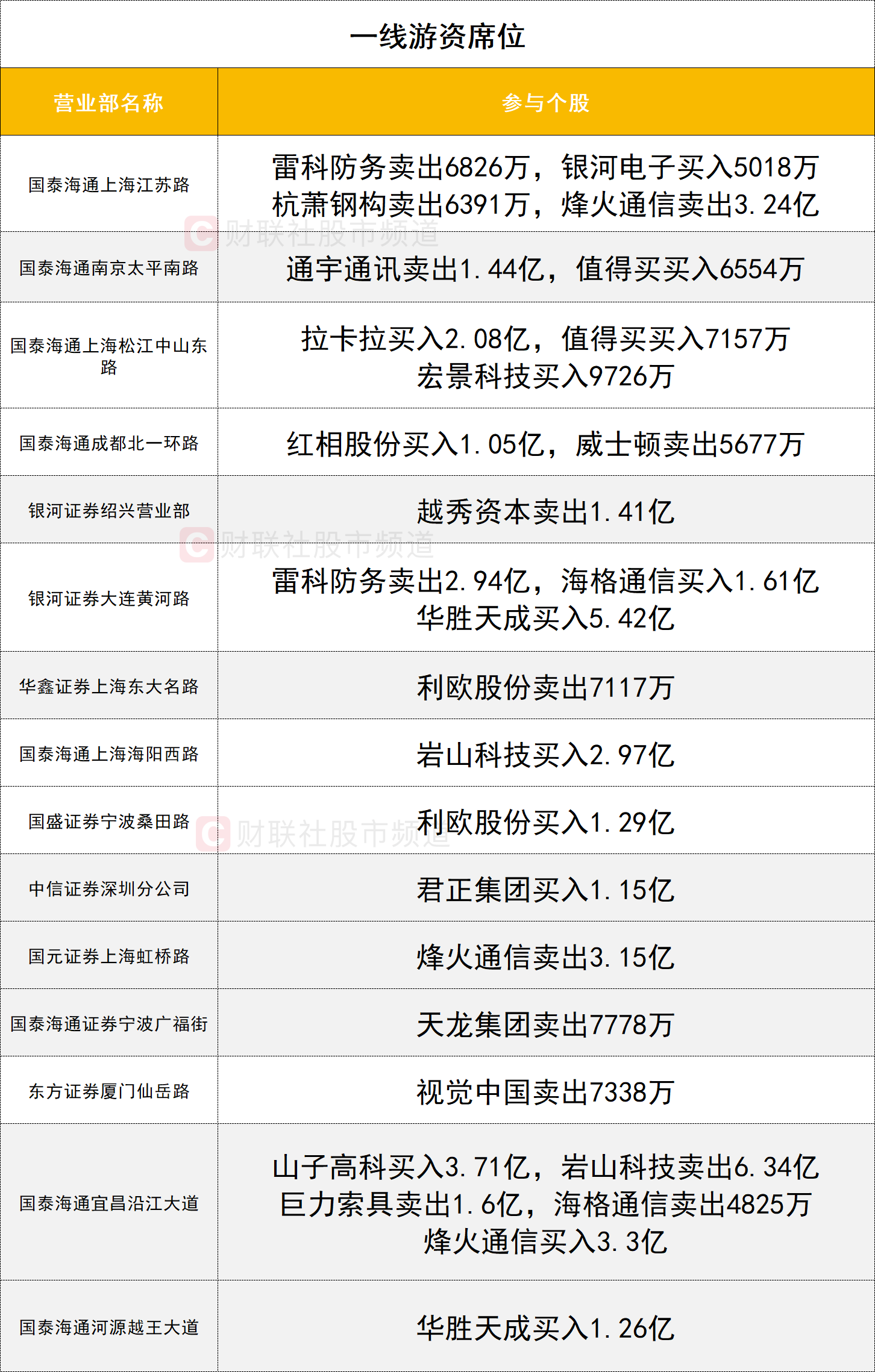 一线游资活跃度较高,岩山科技今日反复开板,一家一线游资(国泰海通证券海阳西路)买入2.97亿,一家一线游资(国泰海通证券宜昌沿江大道)卖出6.34亿。AI应用概念股华胜天成走出4天2板,两家一线游资(中国银河大连黄河路、国泰海通证券河源越王大道)联手抢筹6.68亿。