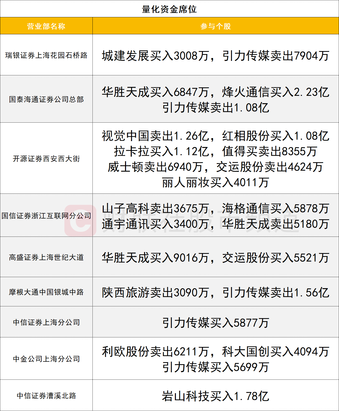量化资金活跃度较高,视觉中国遭开源证券西安西大街营业部卖出1.26亿。