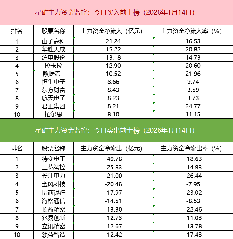 从个股主力资金监控数据来看,主力资金净流入前十的个股所属板块较为分散,山子高科净流入居首。