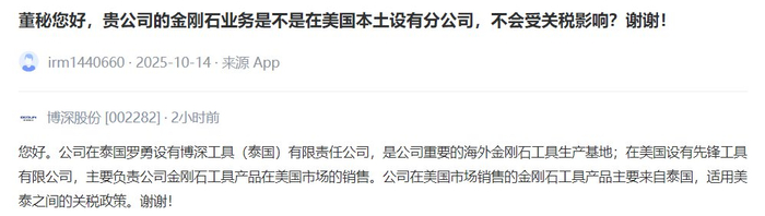 V观财报|博深股份:公司在美销售的金刚石工具产品主要来自泰国