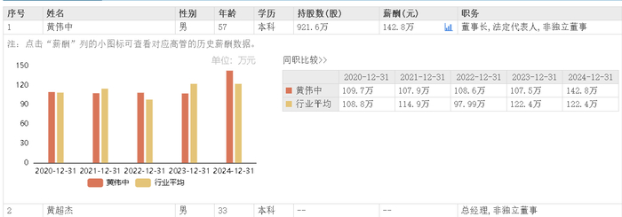 据东方财富网数据,亚太股份董事长黄伟中2024年领薪142.8万元。