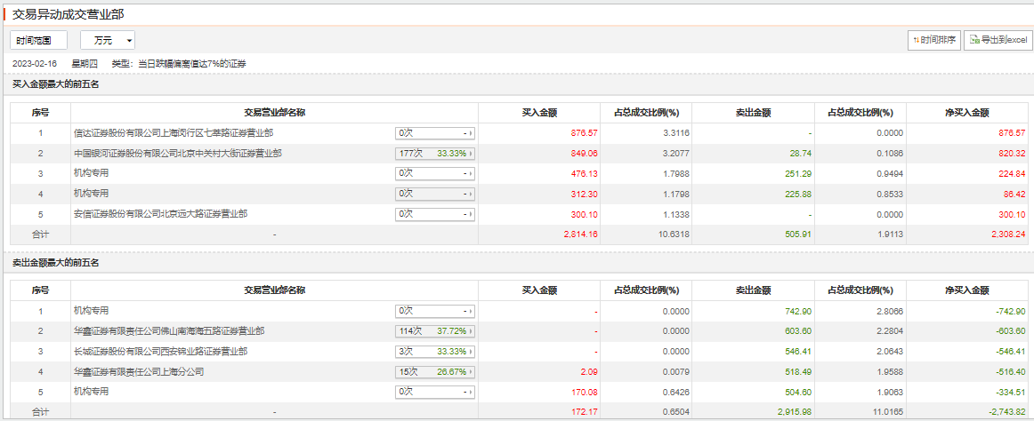 2月16日,宇顺电子今日跌9.46%,龙虎榜数据显示,上榜营业部席位全天成交6408.22万元,占当日总成交金额比例为24.21%。其中,买入金额为2986.33万元,卖出金额为3421.9万元,合计净卖出435.57万元。具体来看,机构买入958.51万元,卖出1724.66万元,合计净卖出766.15万元。此外,华鑫证券佛山南海海五路证券营业部、长城证券西安锦业路证券营业部分别卖出603.60万元、546.41万元;信达证券上海闵行区七莘路证券营业部、中国银河证券北京中关村大街证券营业部分别买入876.57万元、849.06万元。