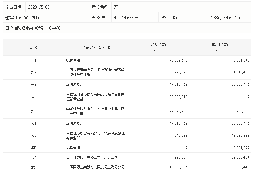 5月8日,遥望科技今日跌停,龙虎榜数据显示,上榜营业部席位全天成交4.94亿元,占当日总成交金额比例为26.9%。其中,买入金额为2.56亿元,卖出金额为2.38亿元,合计净买入1832.01万元。