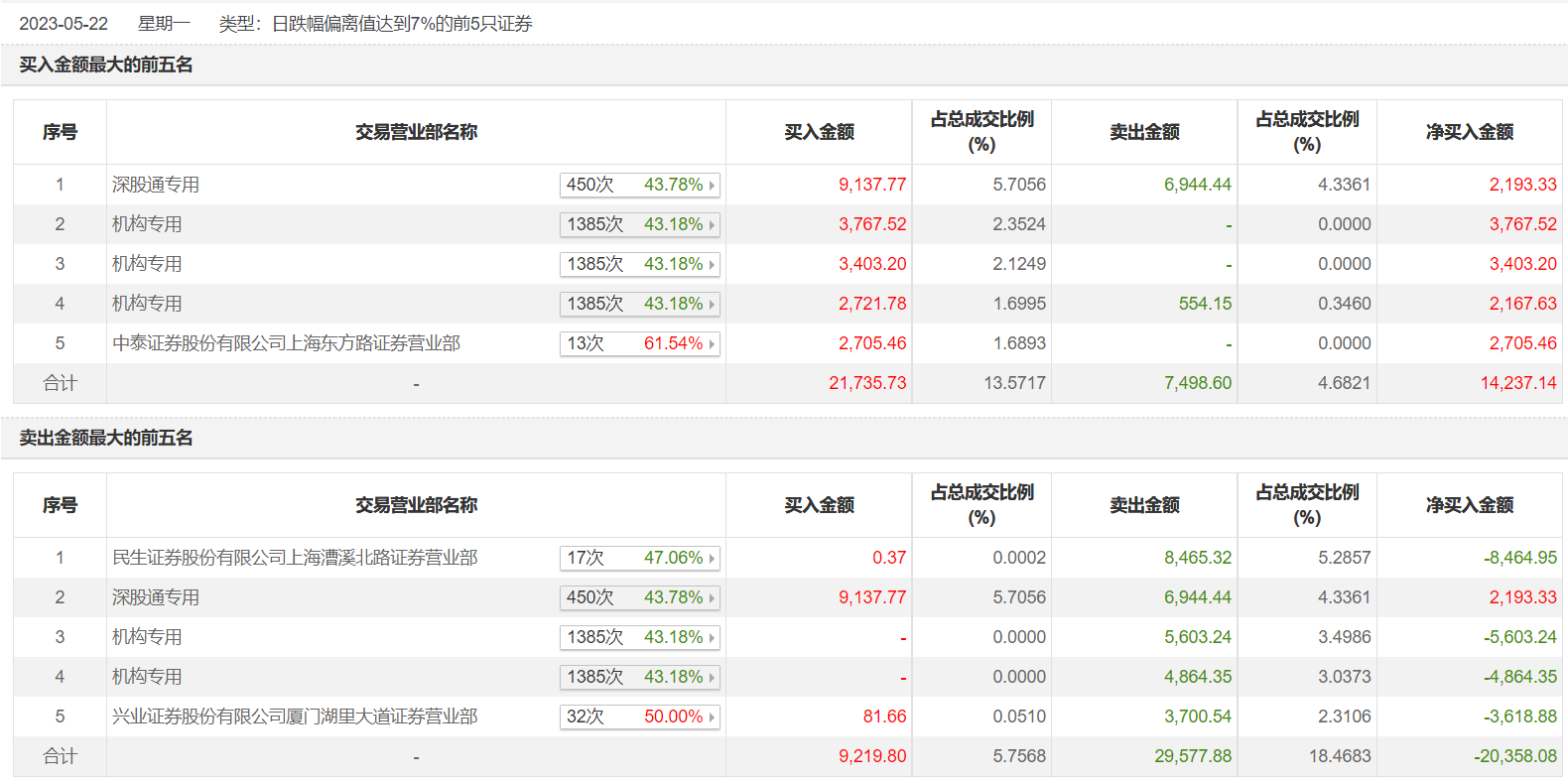 具体来看,机构买入9892.5万元,卖出1.1亿元,合计净卖出1129.23万元。此外,民生证券上海漕溪北路证券营业部、深股通专用分别卖出8465.32万元、6944.44万元;深股通专用、中泰证券上海东方路证券营业部分别买入9137.77万元、2705.46万元。