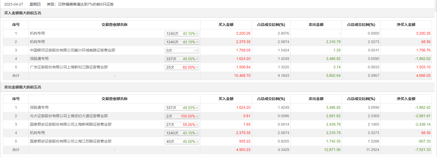 4月27日,奥飞娱乐今日跌停,龙虎榜数据显示,上榜营业部席位全天成交2.43亿元,占当日总成交金额比例为21.31%。其中,买入金额为1.14亿元,卖出金额为1.29亿元,合计净卖出1461.22万元。