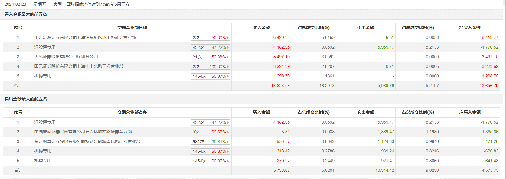 具体来看,机构买入1897.1万元,卖出1860.65万元,合计净买入36.45万元。此外,申万宏源证券有限公司上海浦东新区成山路证券营业部、深股通专用分别买入6420.38万元、4182.95万元;深股通专用、中国银河证券嘉兴环城南路证券营业部分别卖出5959.47万元、1369.47万元。