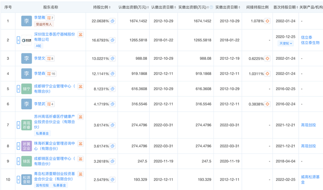 此外,高瓴创投通过旗下两大基金合计持股7.234%。此外,威高松源基金、信达鲲鹏、光华梧桐等为国有控股,但持股比例均不超过5%。