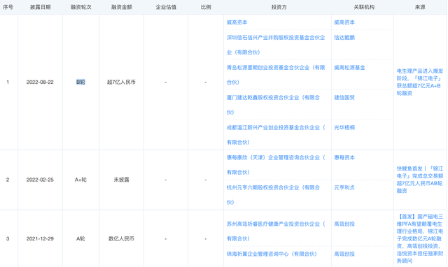 该公司总共历经5轮融资。最近一次超7亿元的B轮融资于2022年8月完成。