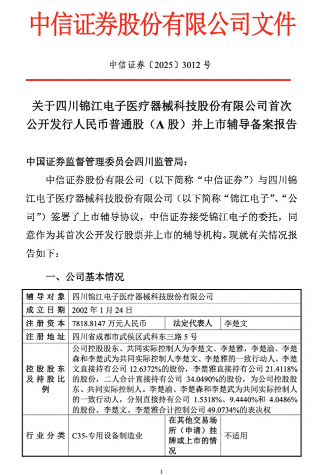 《科创板日报》11月13日讯(记者 黄修眉)科创板IPO折戟17个月后,四川锦江电子医疗器械科技股份有限公司(下称:“锦江电子”)重启IPO之路。