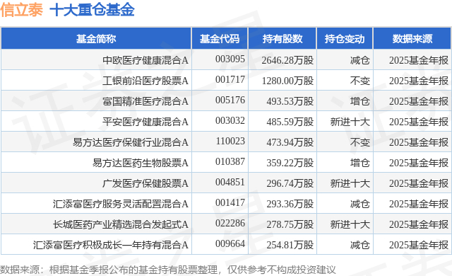根据2025基金年报公募基金重仓股数据,重仓该股的公募基金共51家,其中持有数量最多的公募基金为中欧基金的中欧医疗健康混合A。中欧医疗健康混合A目前规模为138.43亿元,最新净值1.7126(3月13日),较上一交易日下跌0.2%,近一年上涨9.89%。该公募基金现任基金经理为葛兰 赵磊。葛兰在任的基金产品包括:中欧明睿新起点混合,管理时间为2018年7月12日至今,期间收益率为82.49%;中欧医疗创新股票A,管理时间为2019年2月28日至今,期间收益率为36.53%。赵磊在任的基金产品包括:中欧医药生物混合发起A,管理时间为2025年11月26日至今,期间收益率为-10.03%。