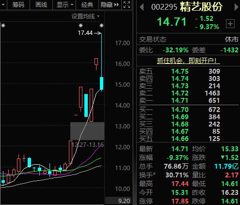 《每日经济新闻》记者注意到,精艺股份9月4日发布相关司法拍卖公告后,引发资本市场高度关注。9月5日—10月10日收盘,精艺股份股价在20个交易日累计上涨47.99%。而在9月24日—10月10日期间的7个交易日,该股已录得5个涨停板。