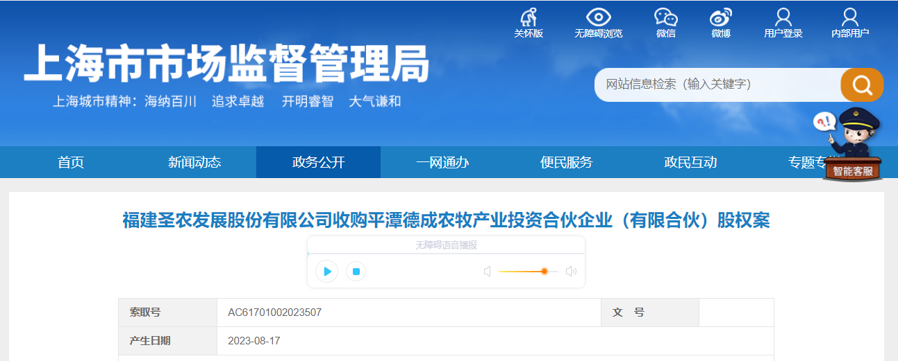 福建圣农发展股份有限公司收购平潭德成农牧产业投资合伙企业(有限合伙)股权案