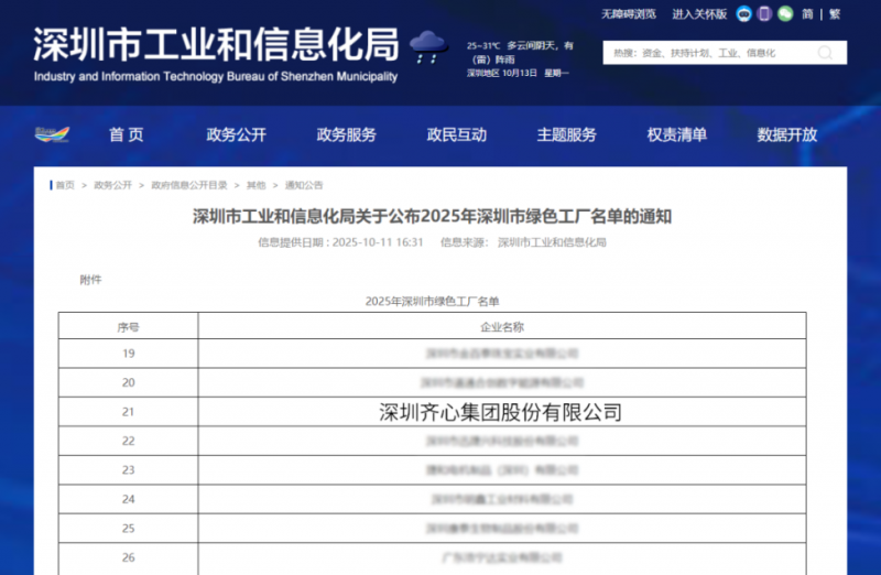 为落实制造强省建设战略部署,促进工业绿色发展,今年深圳市工业和信息化局组织开展2025年深圳市绿色工厂评审,不少入选企业根植深圳本土发展多年,深度参与并伴随深圳制造业发展实现升级。其中,齐心集团凭借资源节约、环境保护、清洁生产和循环经济等方面的综合表现成功入选。