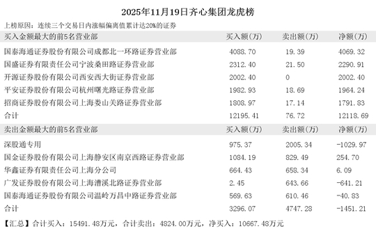 卖出前5席为:华泰证券股份有限公司厦门厦禾路证券营业部、国泰海通证券股份有限公司总部、中信证券股份有限公司上海分公司、国金证券股份有限公司深圳分公司、中信证券股份有限公司深圳深南中路中信大厦证券营业部。共计买入:0万元,共计卖出:10507.85万元。