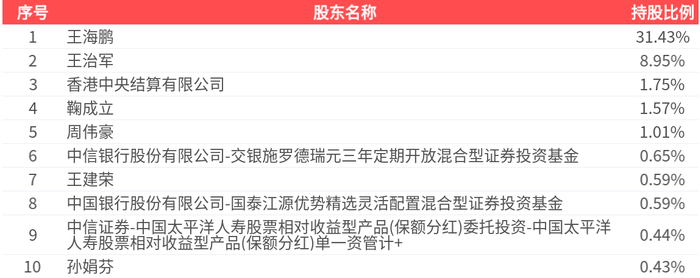 公司股东户数为5.56万户,前十大股东持股数量为7.26亿股,占总股本比例为47.40%,前十大股东持股情况如下: