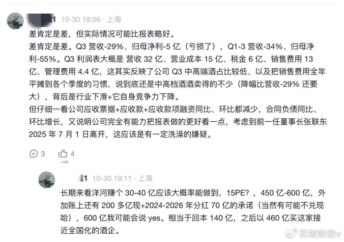 从这次洋河股份三季报业绩亏损,投资者讨论之激烈就能看得出来。