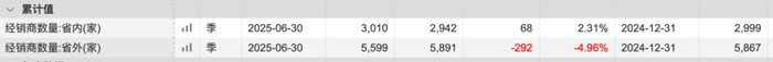 其中,省外经销商较2024年年末减少268家至5599家,省内经销商较2024年年末仅微增11家至3010家。