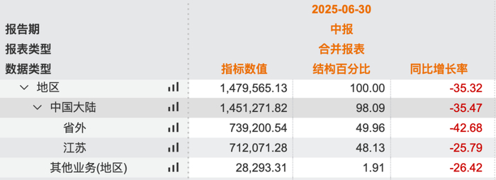 2025年上半年,洋河省外市场营收73.92亿元,同比降幅达42.68%,远超省内市场25.79%的降幅。