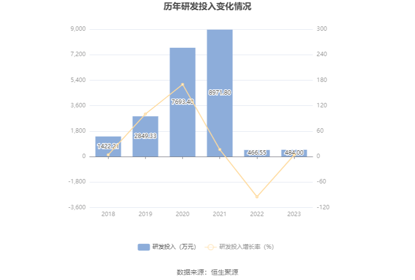 2023年全年,公司研发投入金额为484.00万元,同比增长3.74%;研发投入占营业收入比例为0.06%,相比上年同期上升0.02个百分点。此外,公司全年研发投入资本化率为0。