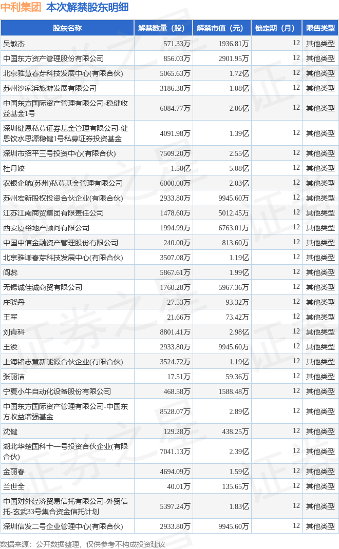 本次解禁涉及股东明细见下表: