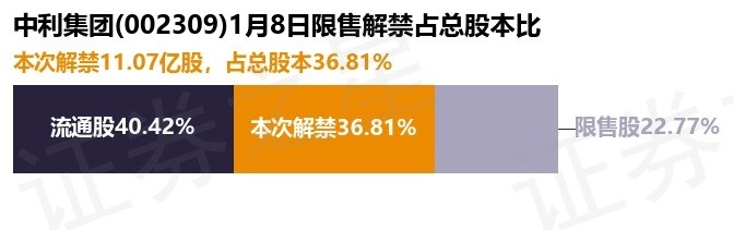 中利集团(002309)11.07亿股限售股将于1月8日解禁,占总股本36.81%
