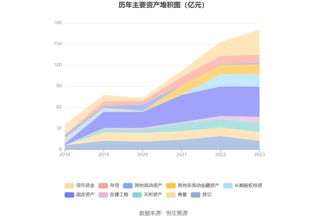 资产重大变化方面,截至2023年年末,公司货币资金较上年末增加75.19%,占公司总资产比重上升7.63个百分点;在建工程较上年末增加127.94%,占公司总资产比重上升2.78个百分点;预付款项较上年末减少55.69%,占公司总资产比重下降2.59个百分点;固定资产较上年末增加1.60%,占公司总资产比重下降2.38个百分点。