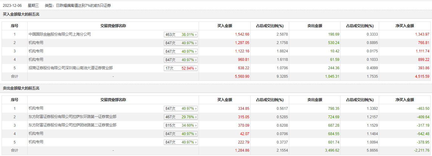 日海智能12月6日跌7.93%,全天换手率达15.99%,振幅达9.73%。龙虎榜数据显示,营业部席位合计净买入2303.83万元。其中,机构买入3979.73万元,卖出2686.9万元,合计净买入1292.84万元。此外,东方财富证券拉萨东环路第一证券营业部、东方财富证券拉萨团结路第二证券营业部分别卖出724.69万元、687.28万元;中国国际金融上海分公司、招商证券深圳南山南油大道证券营业部分别买入1542.66万元、638.22万元。