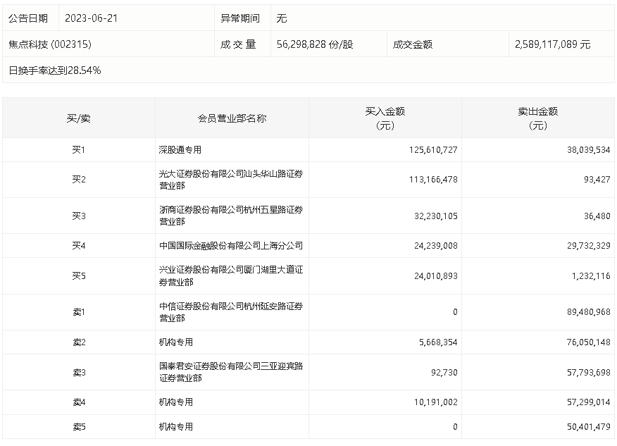 6月21日,焦点科技今日涨5.31%,龙虎榜数据显示,上榜营业部席位全天成交7.35亿元,占当日总成交金额比例为28.4%。其中,买入金额为3.35亿元,卖出金额为4.0亿元,合计净卖出6494.99万元。