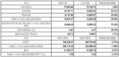 注:表内数据为公司合并报表数据(未经审计)。