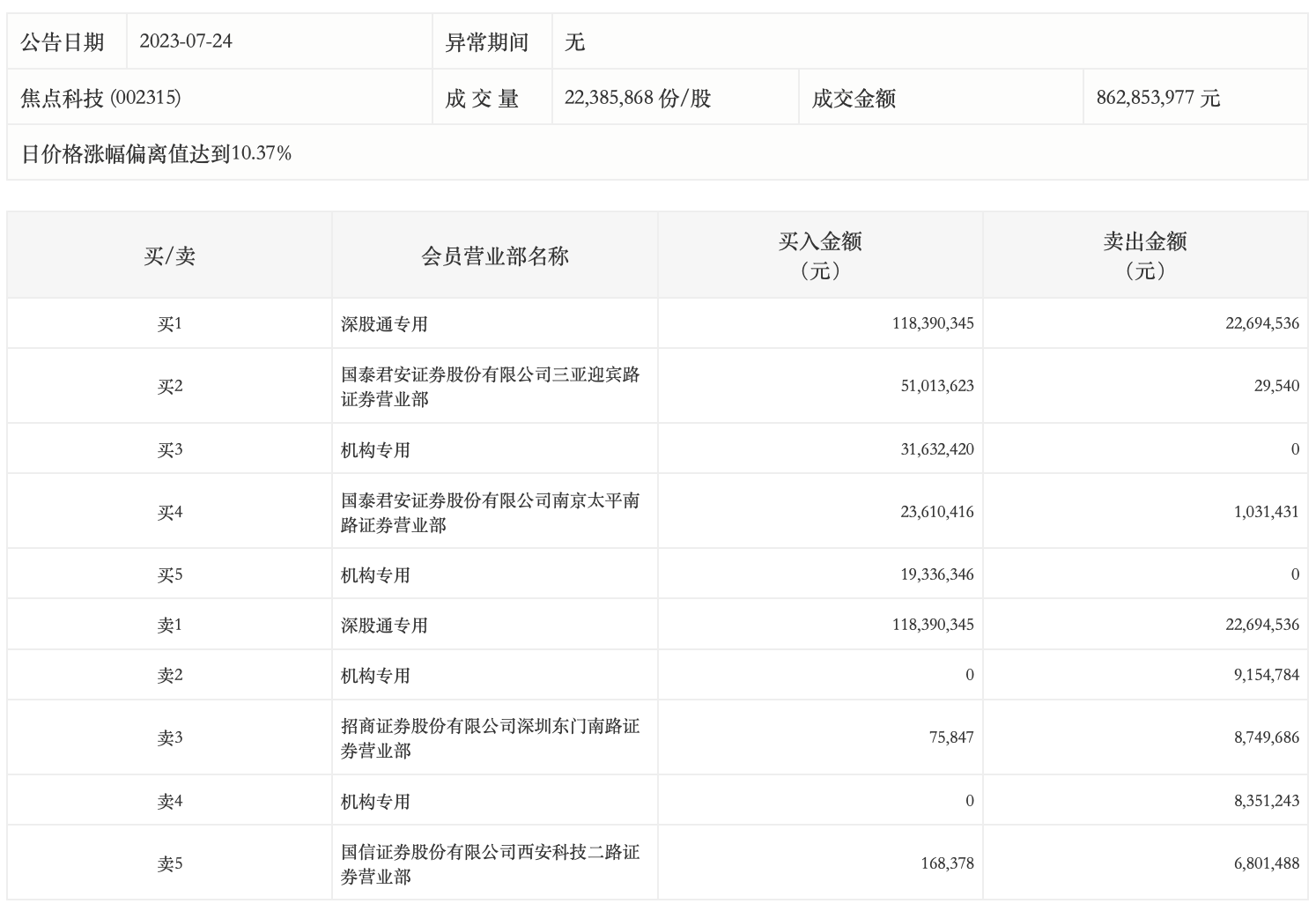 7月24日,焦点科技今日涨停,龙虎榜数据显示,上榜营业部席位全天成交3.01亿元,占当日总成交金额比例为34.89%。其中,买入金额为2.44亿元,卖出金额为5681.27万元,合计净买入1.87亿元。
