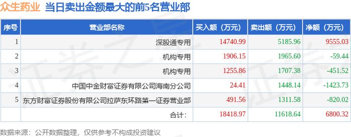 证券之星消息,沪深交易所2025年10月31日公布的交易公开信息显示,众生药业(002317)因日涨幅偏离值达到7%的前5只证券登上龙虎榜。此次是近5个交易日内第1次上榜。