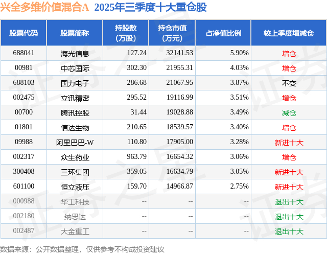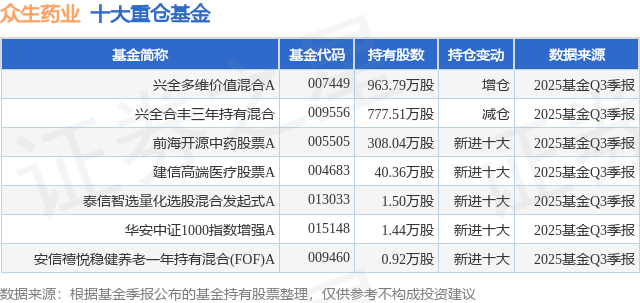 根据2025基金Q3季报公募基金重仓股数据,重仓该股的公募基金共7家,其中持有数量最多的公募基金为兴证全球基金的兴全多维价值混合A。兴全多维价值混合A目前规模为43.0亿元,最新净值2.5222(11月11日),较上一交易日下跌0.6%,近一年上涨34.5%。该公募基金现任基金经理为杨世进。杨世进在任的基金产品包括:兴全合丰三年持有混合,管理时间为2023年8月28日至今,期间收益率为38.46%;兴全趋势投资混合(LOF),管理时间为2025年7月2日至今,期间收益率为29.71%。