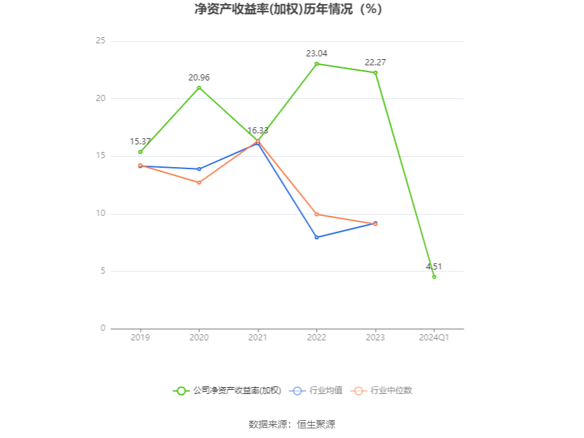 数据显示,2024年第一季度公司加权平均净资产收益率为4.51%,较上年同期增长0.84个百分点;公司2024年第一季度投入资本回报率为3.81%,较上年同期增长0.70个百分点。