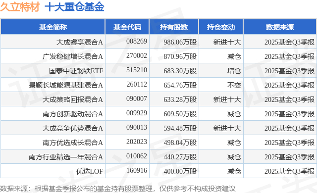 重仓久立特材的前十大公募基金请见下表: