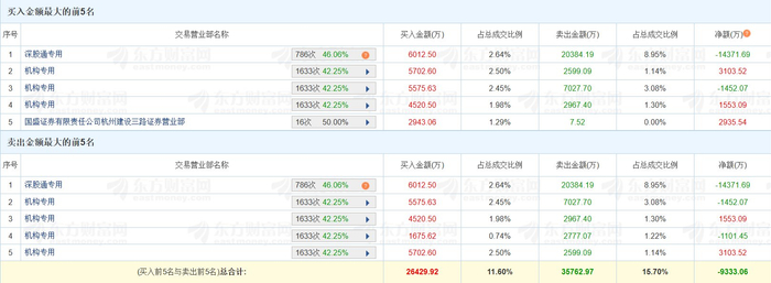 龙虎榜丨海峡股份跌7.55%,深股通净卖出1.44亿元