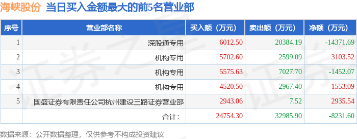 10月22日海峡股份(002320)龙虎榜数据:机构净买入2103.09万元,北向资金净卖出1.44亿元