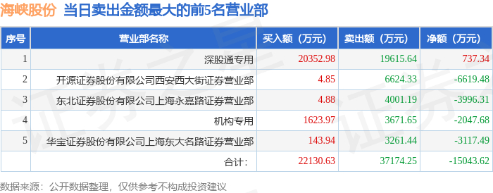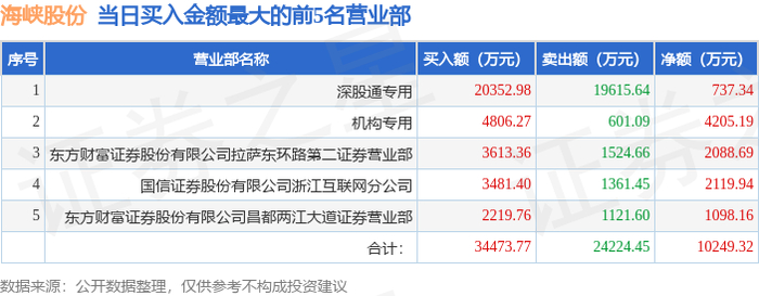 11月6日海峡股份(002320)龙虎榜数据:机构净买入2157.51万元,北向资金净买入737.34万元