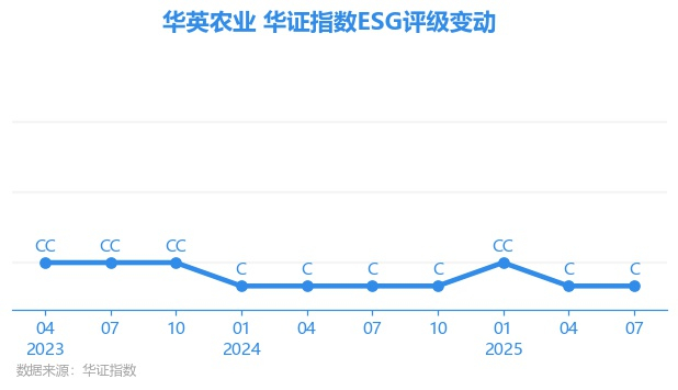 日前,华证指数公布了新一期(2025年7月31日)的ESG评级结果,华英农业(002321.SZ)获得C评级(华证指数评级为C起至AAA九档,C为最低档,AAA为其最高一级评级/AA为其第二档),上一期(2025年4月30日)ESG评级为C。本期ESG评级在156家食品行业A股上市公司中排名第137(上一期排名第148)。