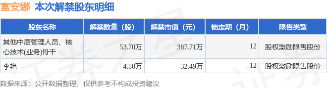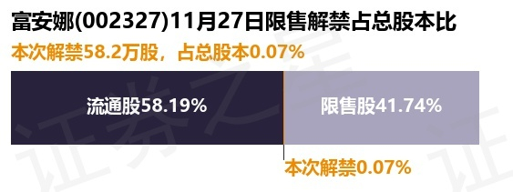 富安娜(002327)58.2万股限售股将于11月27日解禁,占总股本0.07%