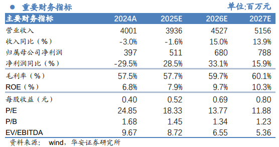 考虑到公司原料药业务仍有所承压,部分制剂产品受集采影响收入有所下滑,我们下调对公司2025-2027年盈利预测。预计公司2025-2027年实现营业收入39.36/ 45.27/ 51.56亿元,同比 -1.6%/ +15.0%/ +13.9%(此前为41.57/47.80/54.48亿元);实现归母净利润5.11/ 6.80/ 7.88亿元,同比+28.5%/ +33.1%/ +15.9%(此前为6.05/7.11/8.25亿元)。维持“买入”评级。
