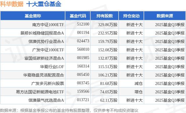 重仓科华数据的前十大公募基金请见下表: