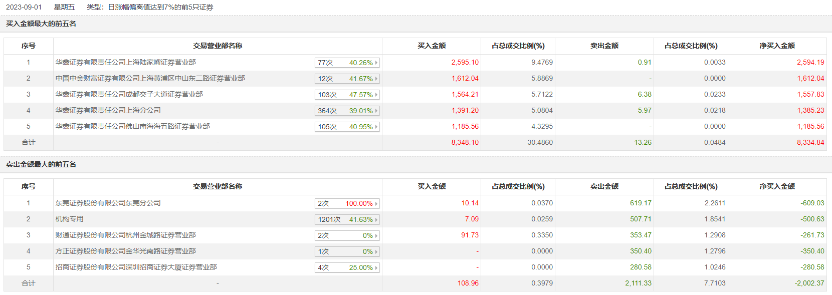 具体来看,机构买入7.09万元,卖出507.71万元,合计净卖出500.63万元。此外,华鑫证券上海陆家嘴证券营业部、中国中金财富证券有限公司上海黄浦区中山东二路证券营业部分别买入2595.1万元、1612.04万元;东莞证券东莞分公司、财通证券杭州金城路证券营业部分别卖出619.17万元、353.47万元。