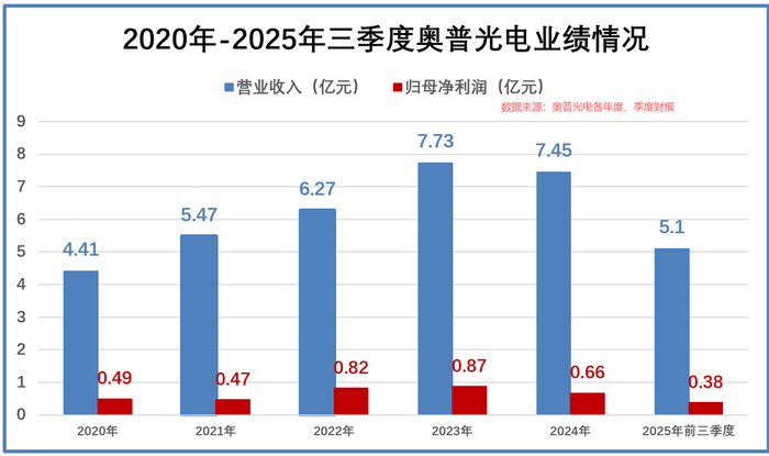 虽然奥普光电抗住了盈利端的压力,但是下游需求的萎缩还是反映在公司的营收上,造就了近两年略微停滞的业务状态。