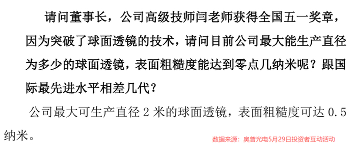 而后续公司引进长光大气的机床后,奥普光电的透镜极限粗糙度又从0.5nm提高到0.2nm以下。