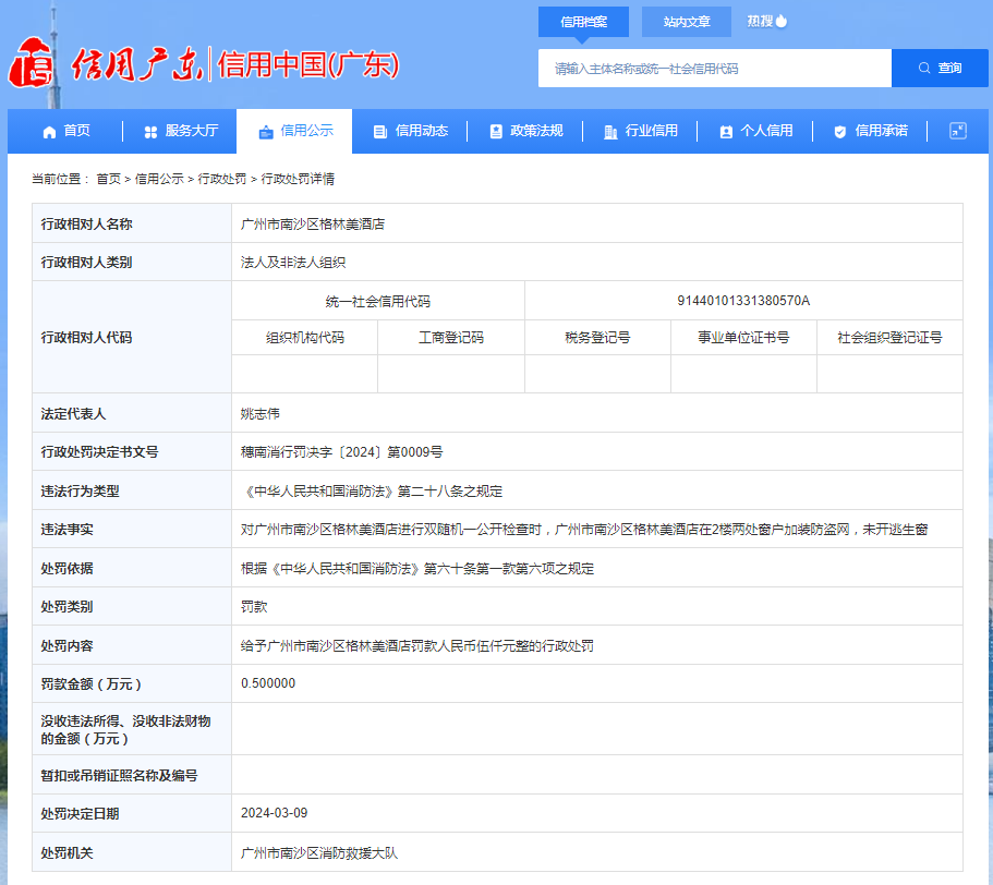 行政处罚决定书文号:穗南消行罚决字〔2024〕第0009号