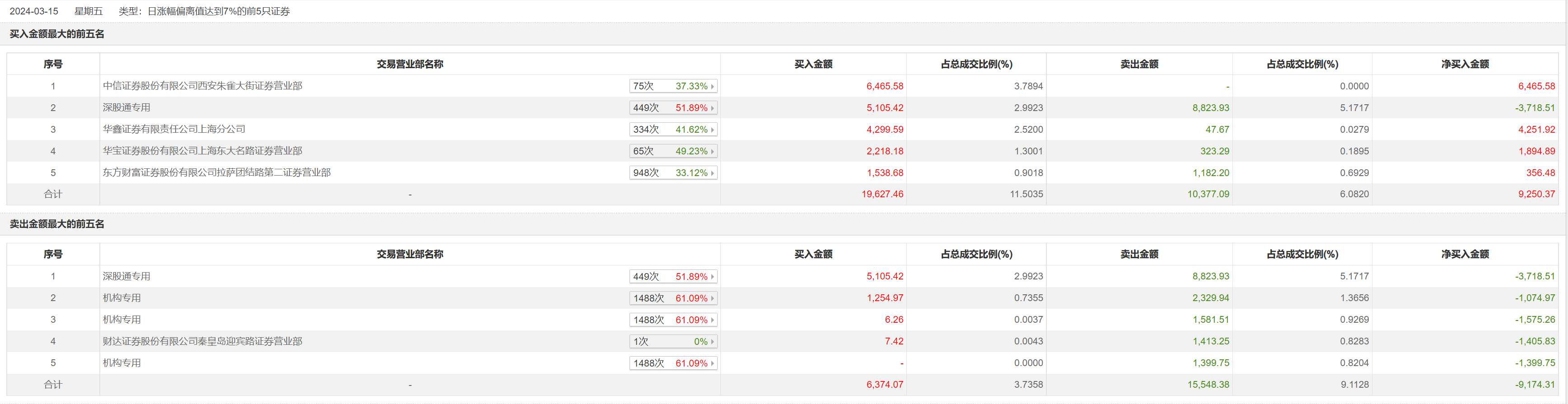 今日涨停,成交额17.06亿元,换手率5.69%,盘后龙虎榜数据显示,深股通专用席位买入5105.42万元并卖出8823.93万元,三机构专用席位净卖出4049.98万元。