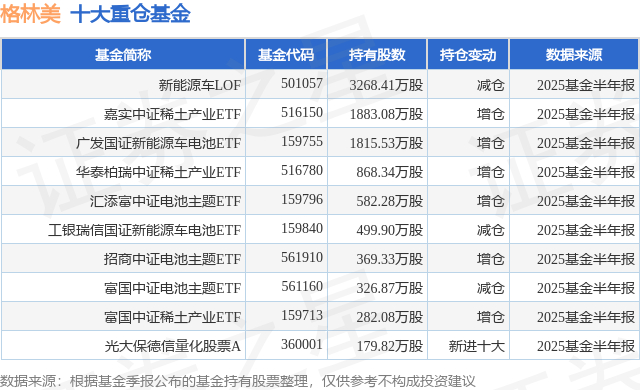 重仓格林美的前十大公募基金请见下表: