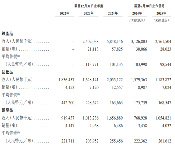 不过值得注意的是,其产品价格的不稳定。比如新能源材料中的四氧化三钴,平均售价自2022年的27.02万元/吨跌至2024年的9.83万元/吨,跌幅63.62%,2025上半年反弹至14.78万元/吨。